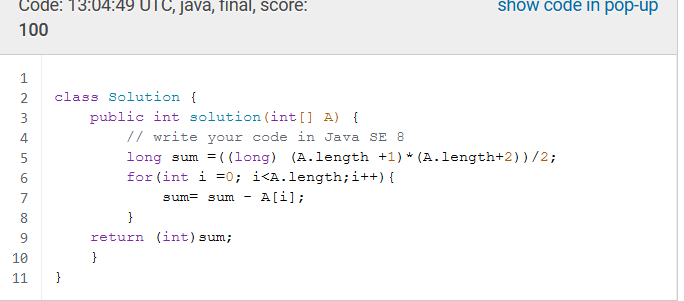 Codility - Lesson3 PermMissingElem 본문